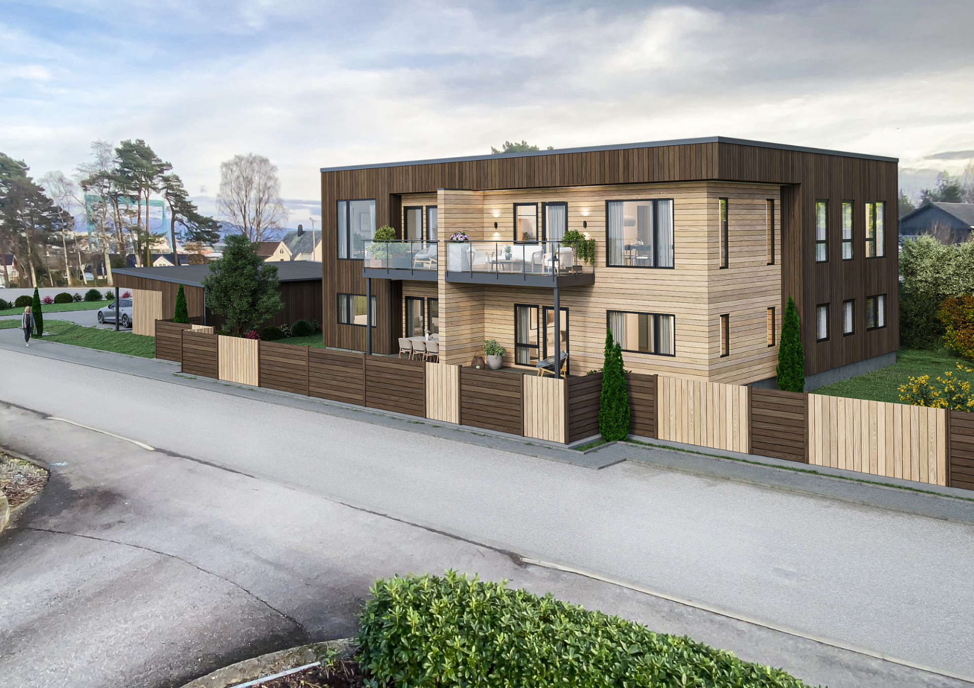 Bustaden har eit moderne og stilreint utvendig uttrykk.